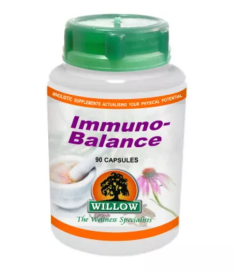 Willow Immuno-Balance is a dietary supplement designed to support healthy immune functioning by helping to regulate an over- or under-active immune response and reduce inflammation. It is formulated with natural ingredients like elderberry extract, olive leaf extract, and turmeric extract, and is used to provide nutritional support for immune balance and resilience.